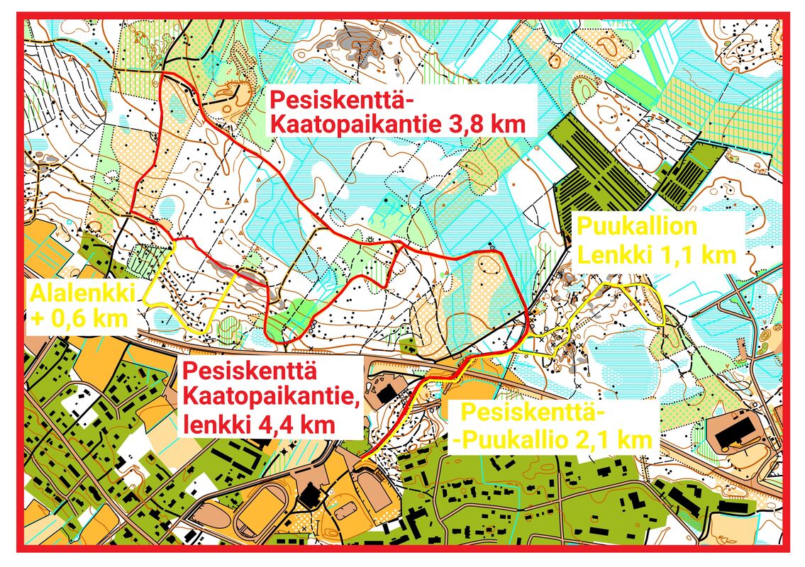 Juoksuharjoitukset jatkuvat tiistaina 21.10.2025. Hiihtojaoston ja suunnistusjaoston yhteistyönä toteutetaan viikottaiset yhteislenkit tiistaista 30.9. alkaen. Lenkkiaika on klo 18-19 ja aloitus pesiskentän parkkipaikalta. Lenkit ovat avoimia ihan kaikille iästä ja lajista riippumatta. Lenkin pituus ja vauhti sovitetaan kulloinkin paikalla olevan porukan mukaan. Tarvittaessa jakaudutaan pienempiin lenkkiryhmiin. Ohessa kartta lähimaaston eri mittaisista lenkeistä. Tervetuloa lenkille! |